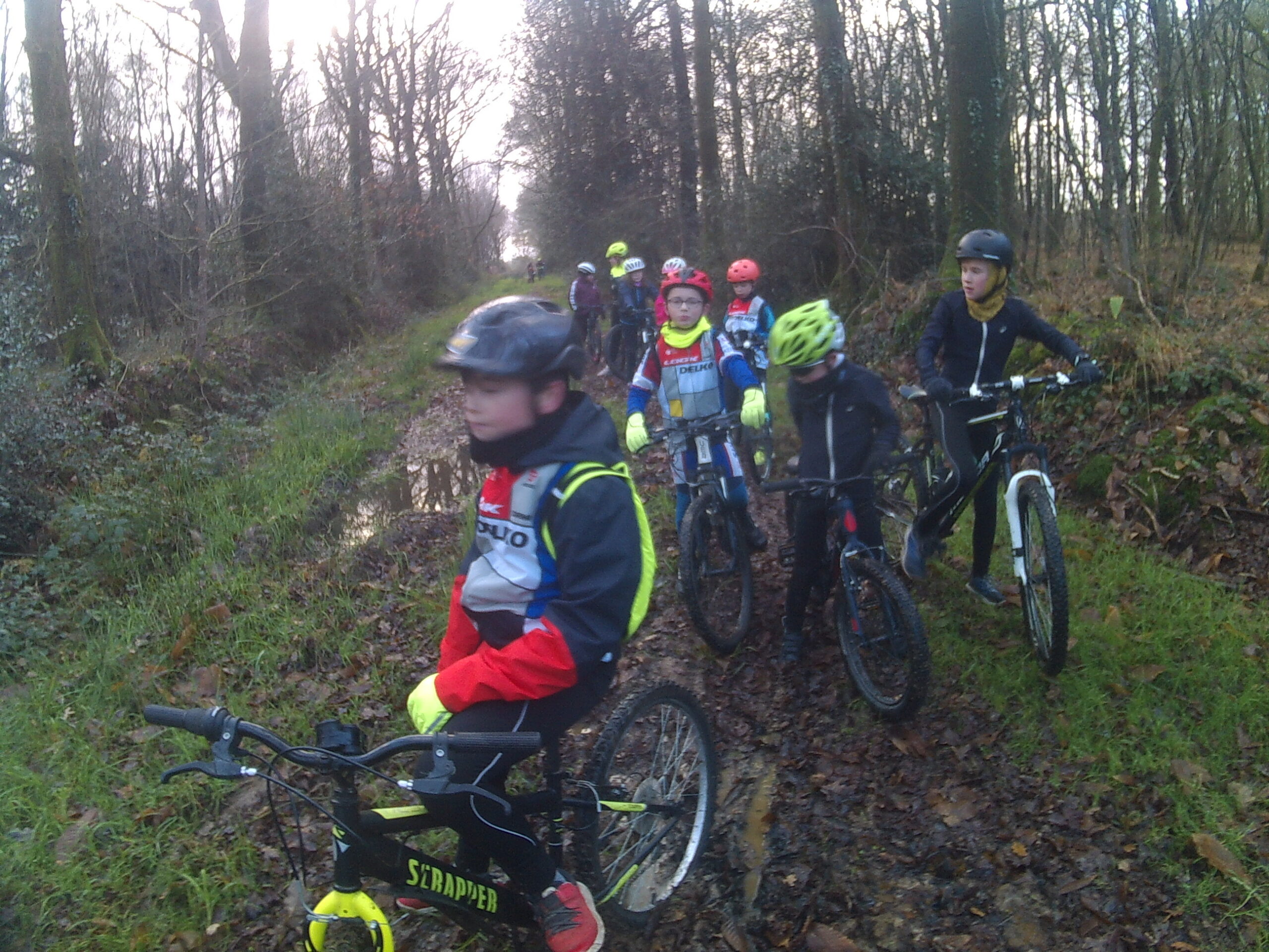 Pour changer un peu les habitudes de pratique des jeunes de l’école de cyclisme, rendez-vous était donné ce samedi matin 13 décembre à Trémorel sur le parking du cimetière. Ils sont tous là pour l’heure à une exception. Petite photo de groupe puis départ par la voie verte. Formation de trois groupes de niveau puis direction d’abord le petit bois avant une bifurcation: les grands vont se diriger vers Les Trois Moineaux pour du technique tandis que les deux autres groupes passeront près du château d’eau et se répartiront dans le grand bois avec tout de même quelques talus à franchir (vidéo). Au final, regroupement de tous vers 11h45 et retour au parking pour midi. Une belle matinée de Vtt bien gérée dans des bois qui ne sont pas encore gagnés par l’humidité.