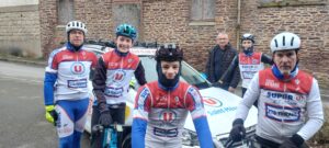 Soleil (et c’est le premier depuis bien longtemps) aussi pour le rassemblement des plus grands pour une sortie route. Les minimes sont enfin au rendez-vous sous un superbe soleil d’hiver. Ils vont rouler en compagnie de Loïc et Philippe et croiseront d’ailleurs les grands à Saint M’Hervon. Groupe des grands qui s’est dirigé vers Bécherel …