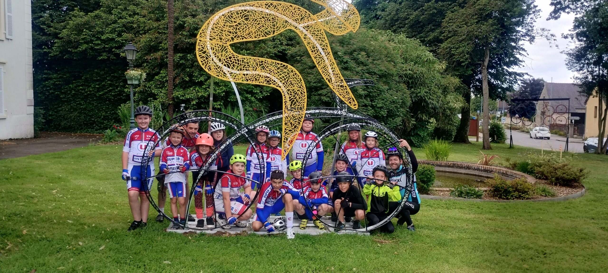 Le rassemblement des jeunes de l’école de cyclisme s’est de nouveau déroulé ce samedi 14 juin sur le parking des écoles afin de toujours préparer le Trophée Régional des Ecoles de Cyclisme (TREC) qui aura enfin lieu dimanche prochain 22 juin à Pleucadeuc. Donc, une moitié de séance destinée aux jeux d’adresse puis une seconde dédiée à la route. Départ tous ensemble vers La Chupière, descente (rapide) derrière Super U puis jusqu’au Loscouët avant de tourner vers Gaël et de retourner de suite à droite vers Fahineuc avant de se diriger vers l’Espace Jean Guéguau afin de prendre une photo devant le grand vélo annonçant l’étape du Tour de France du samedi 12 juillet. Retour par la rue de Dinan.