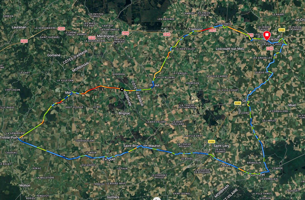 Il ne pleut pas mais le ciel reste menaçant avec quelques petits crachins au cours de la sortie. Par contre, le vent est assez fort en direction du Sud-Ouest, ce qui apporte de la douceur (11°/12°) et le groupe est encore restreint en raison des vacances. Philippe suit dans la voiture avec au programme du jour des kilomètres individuels. Départ vers Gaël puis La Loriette avec un premier km seul puis d’autres en sortie de Concoret et de Mauron. A Saint Brieuc de Mauron, le groupe minimes rentre tandis que les grands font de nouveaux kilomètres vent défavorable. A partir de La Trinité Porhoët, l’allure va enfin s’accélérer avec le vent favorable jusqu’au retour au club. Il n’a pas plu sauf petit crachin mais le vent a bien fatigué les organismes….