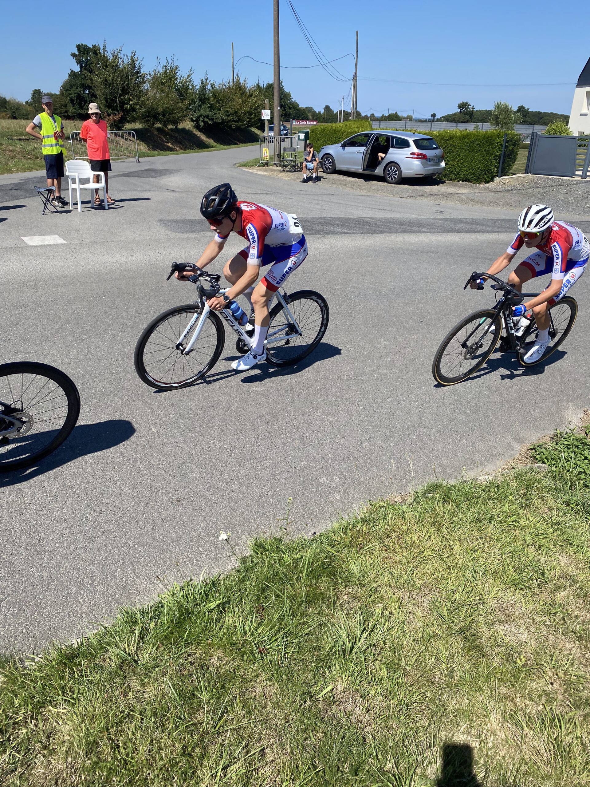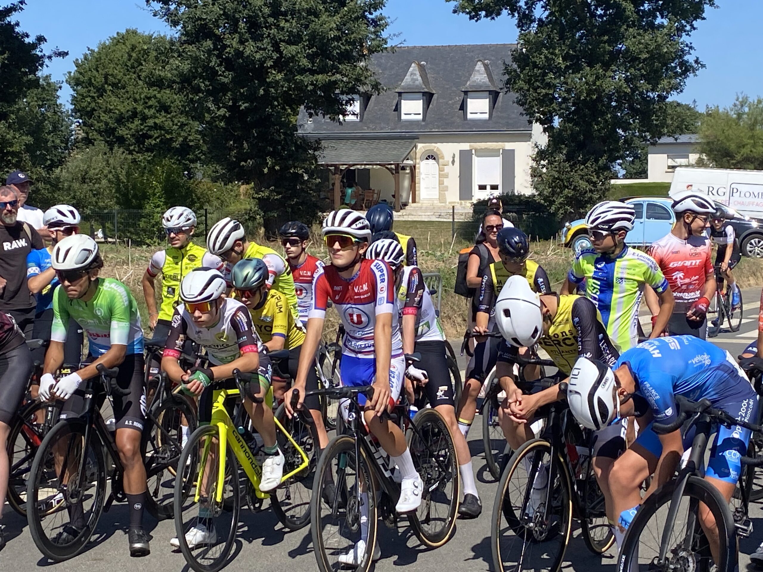 Les vacances se terminent et c’est bien l’heure de la reprise des courses cyclistes. Simon et Théo se sont inscrits à la course de Saint Trimoël, petit village situé quelques kilomètres au nord de Moncontour. Seulement une trentaine de coureurs au départ sous un superbe soleil afin d’effectuer les 9 tours de 5,5 kilomètres. Quelques attaques et un petit écrémage par l’arrière mais arrivée au sprint pour une quinzaine de coureurs (vidéo) avec au final une 12ème place pour Simon suivi de près par Théo (14ème).
